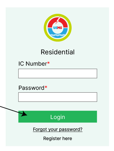 Pergi ke www.usms.com.bn kemudian pergi ke 'USMS Self-Care' dan tekan 'Residential' atau 'Commercial' Tekan 'Register here' untuk mendaftar